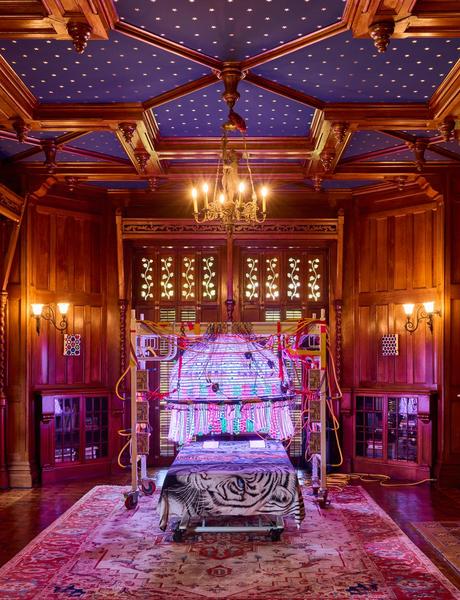 Neon glows from the wood-trim parlor of the Newport Art Museum, shining from a large pitch tent studded with antennae and LED strips, distorted and enlarged by the narrow walls that surround it. Two visitors, strangers to one another and perhaps themselves, slip off their shoes before pulling back the tent’s beige curtains to reveal a cushy rainbow field of luminescent pom-pom polka dots, the unmistakable backdrop of Bobby Anspach’s Place For Continuous Eye Contact (Tent) (2025, edition 1 of 3)....
